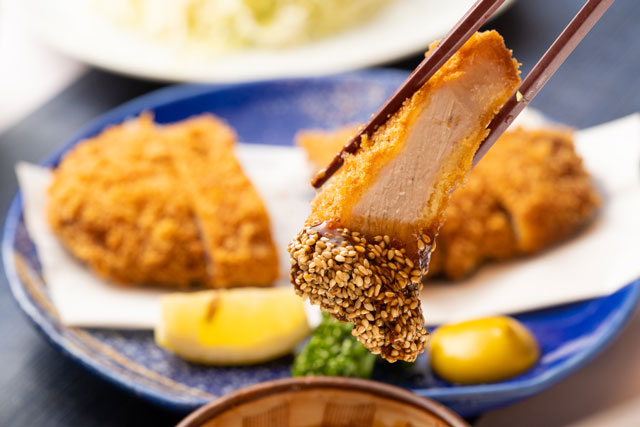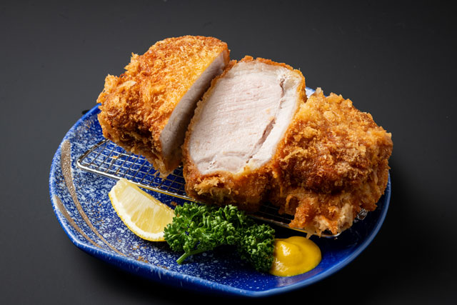 また、熟成庫で熟成させた鹿児島県産熟成豚ならではの旨味と甘みを堪能できる“厚切り熟成とんかつ”は、厚いのに柔らかくジューシーで、驚きの美味しさが味わえます。