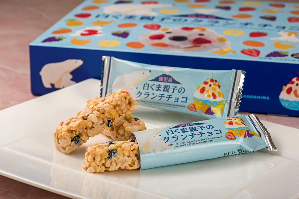 • 鹿児島名物かき氷白くまのクランチチョコ。持って帰れる白くまです。