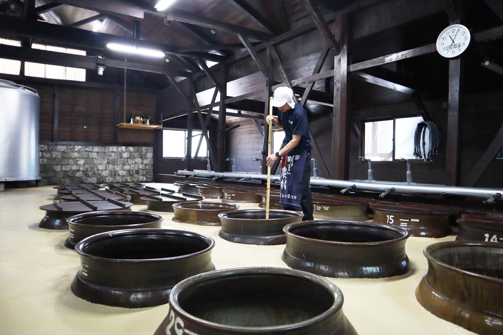 1911年の創業以来受け継がれてきた「和がめ」で焼酎を日々造り出す
